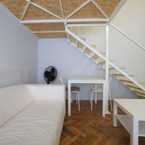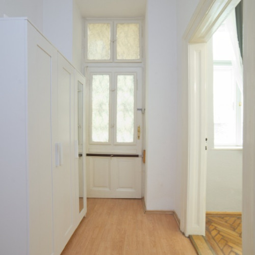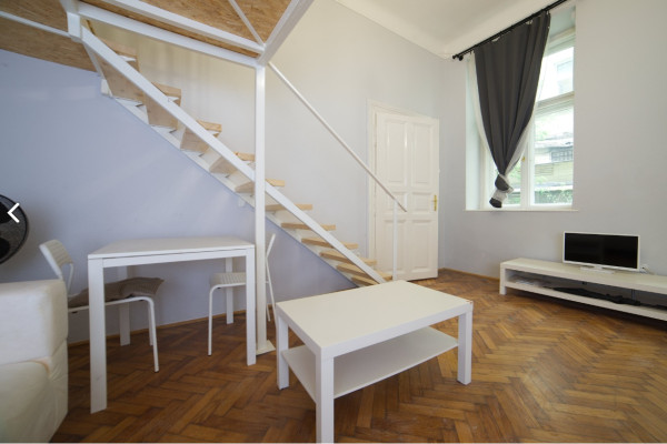 Furnished apartment for rent in the city center, 40 sqm, with a gallery on the first floor, near Klauzal Square, on Akácfa Street.