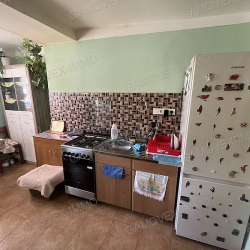 A háznak két bejárata van, egyik a tágas konyhába nyílik, másik a középső szobába. A konyhából érhető el a szintén jó nagy fürdő-wc helyiség.